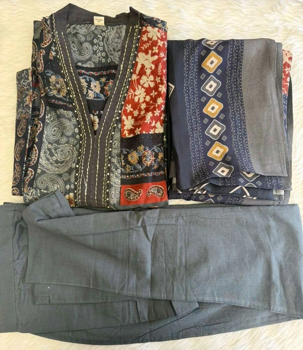 Ajrakh-Inspired Kurta Set with Patterned Border