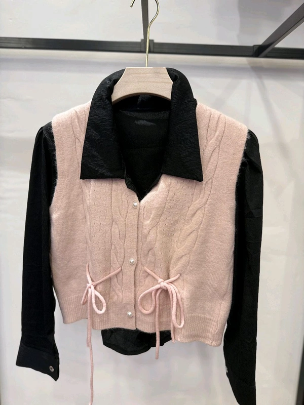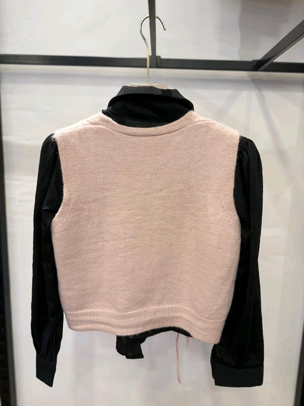 Cropped Pink Cable Knit Sweater Vest with Tie Front Detail