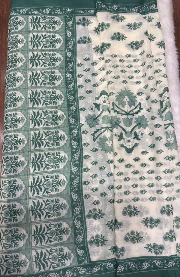 Mint Green & White Printed Kurta Set with Chevron Pants