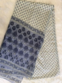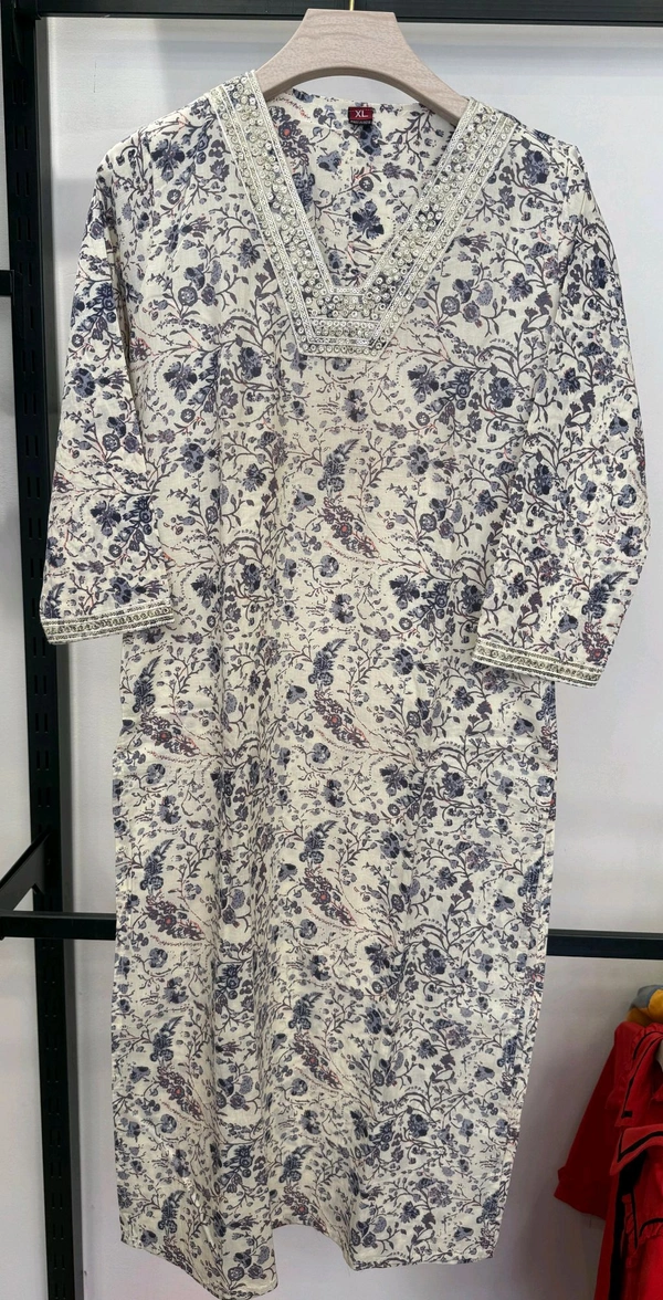 Off-White/Beige Floral Kurta Set with Embellished Yoke