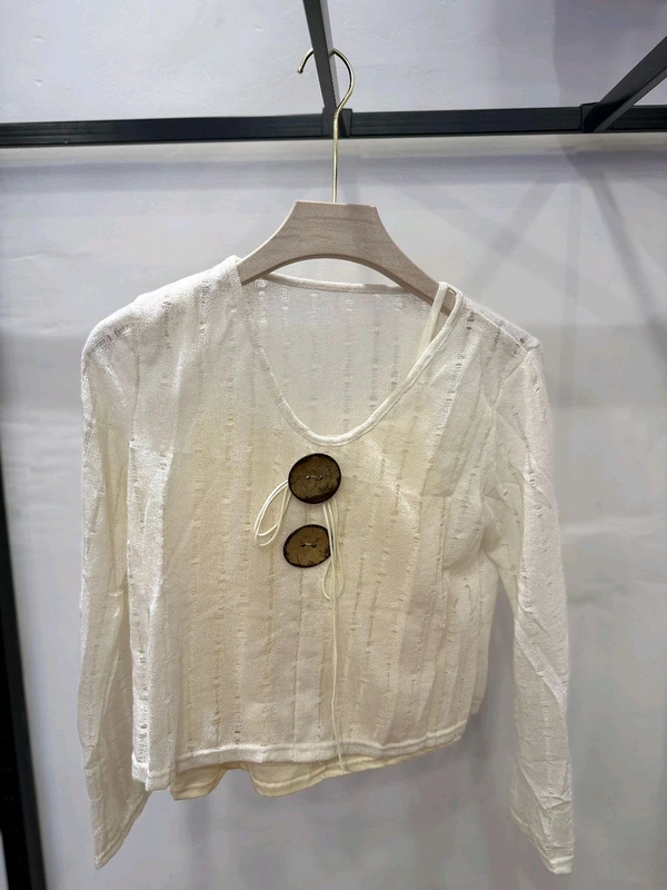 Sheer Knit Bolero with Wood Buttons